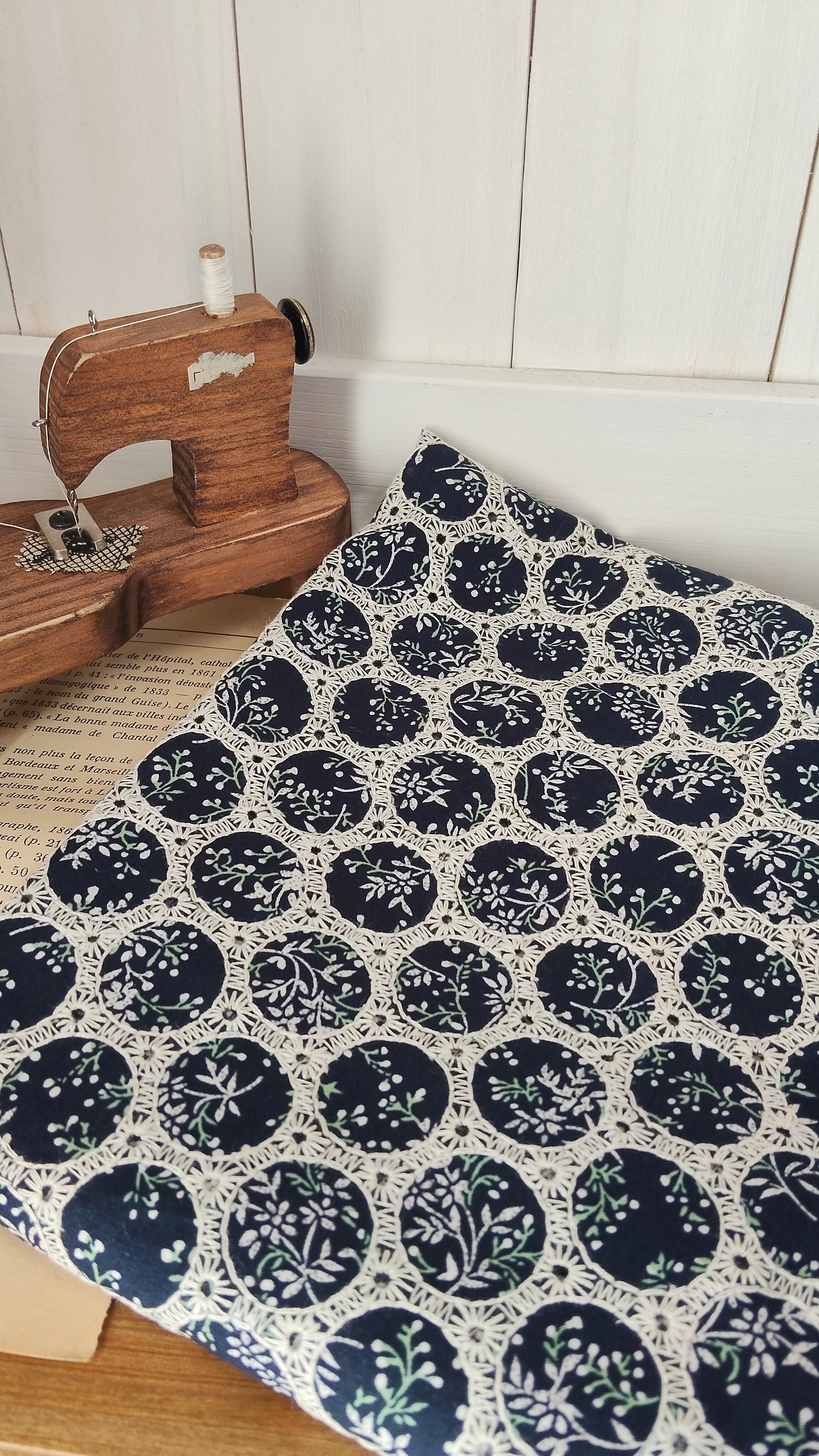 【カット済0.5y】ネイビーサークル刺繍 | kemo.korea.fabric