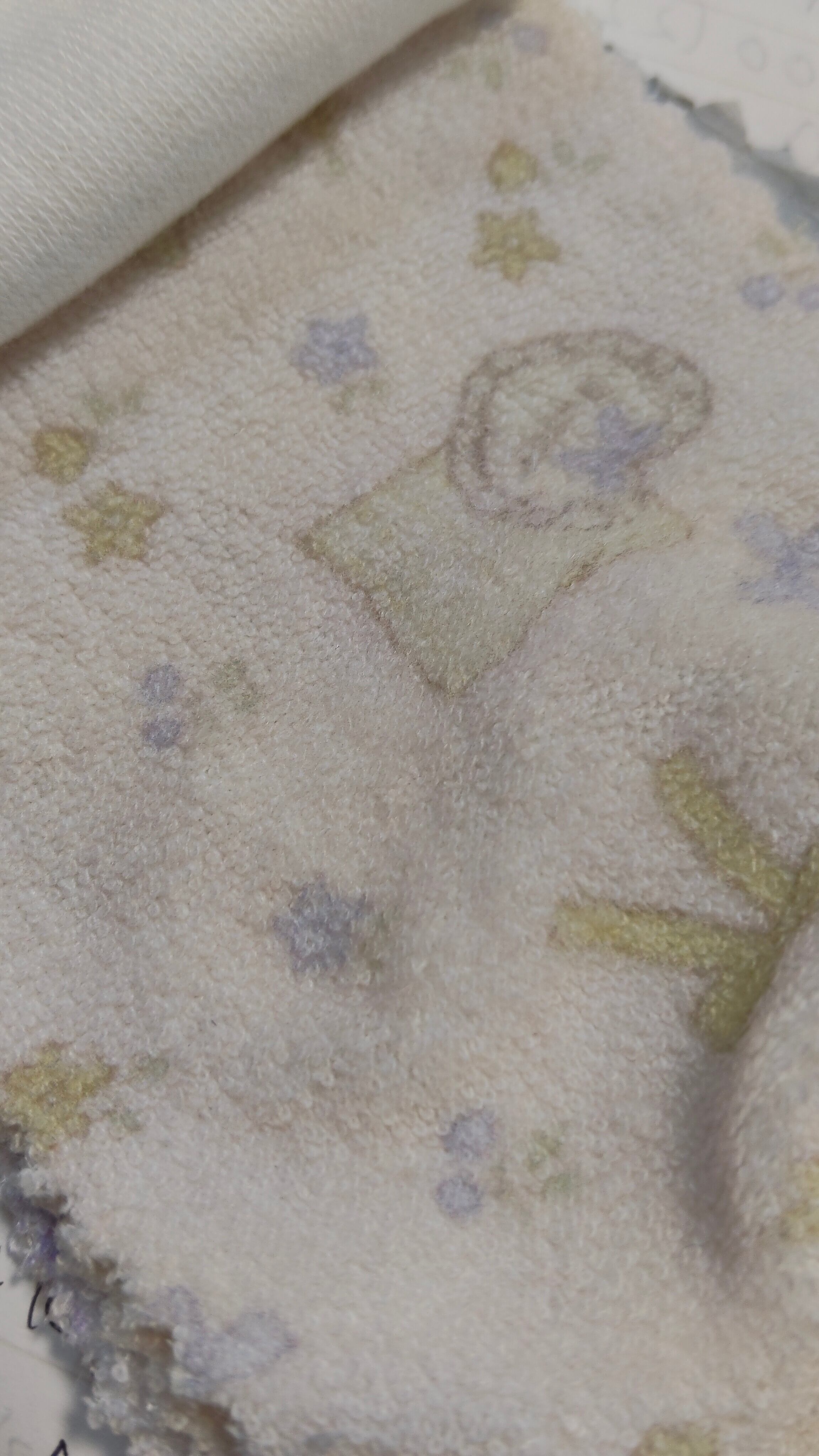 ふわふわのパイル生地 イラストはリボン、くまさんのぬいぐるみ、うさぎさんのぬいぐるみなどかわいい! 素材は細かくは不明ですが コットンとおそらくスパンがはいっています 【生地幅】約144cm 【厚さ】ふんわり普通 【伸縮性】あり 数量1=0.5y(45cm) 数量2の場合1y(90cm)と繋げてお送りします 数量1までクリックポスト対応可能