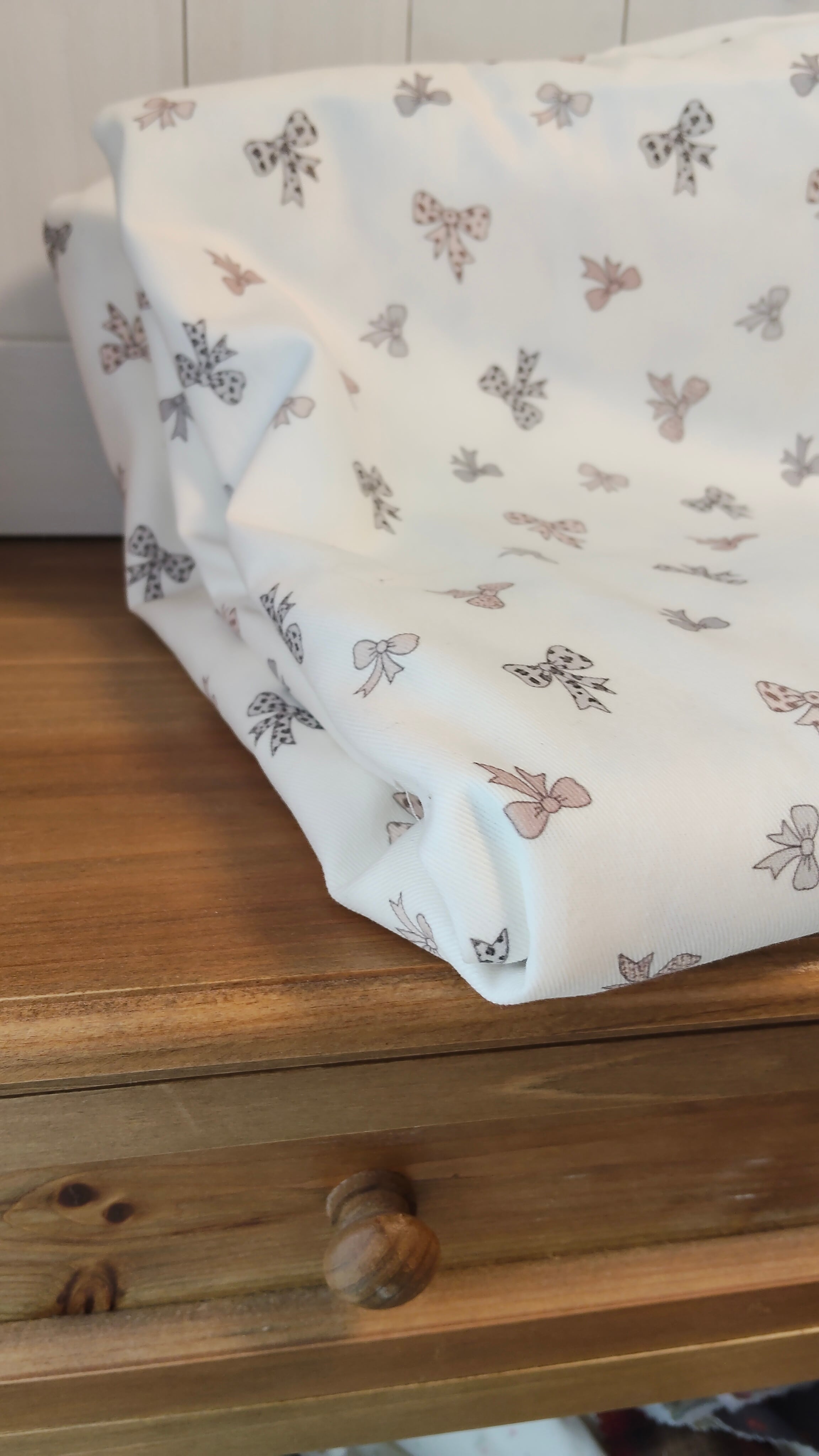 リボンにレオパード柄が甘辛MIXデザイン 入園、入学グッズに〜 【素材】コットン100% 【生地幅】約145cm 【厚さ】普通 【伸縮性】なし 数量1=0.5y(45cm) 数量2の場合1y(90cm)と繋げてお送りします 数量3までクリックポスト対応可能